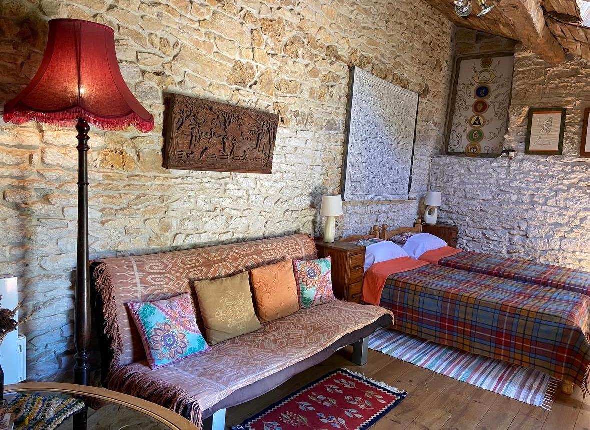 Nestled in the courtyard beside the farmhouse, the gîte offers a quiet and comfortable space for two. With twin beds, a small lounge, and a private shower room, it’s a simple, self-contained retreat where you can unwind, make tea, and enjoy moments of gentle solitude between gatherings. (for 2 people sharing)